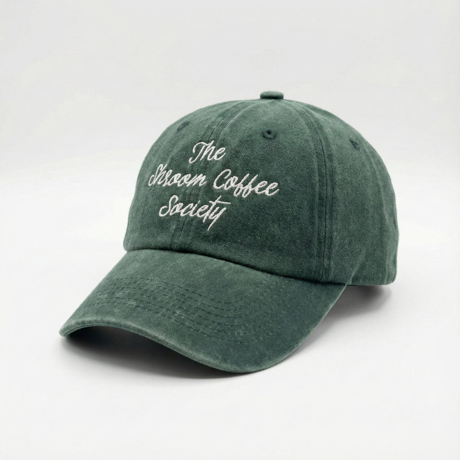 A relaxed, vintage-washed 100% cotton dad hat embroidered with The Shroom Coffee Society in soft white stitching. Cozy, casual, and effortlessly wearable — it’s the perfect everyday cap for slow mornings, coffee walks, creative days, and lounging in the sun.