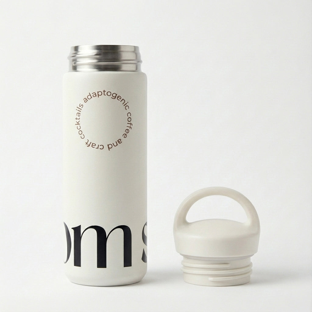A minimalist, functional bottle made for calm energy, creative days, and Shroom Coffee rituals on the move.