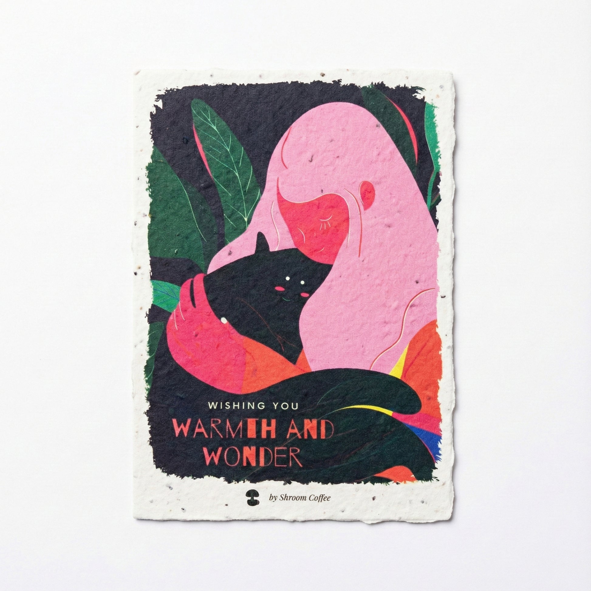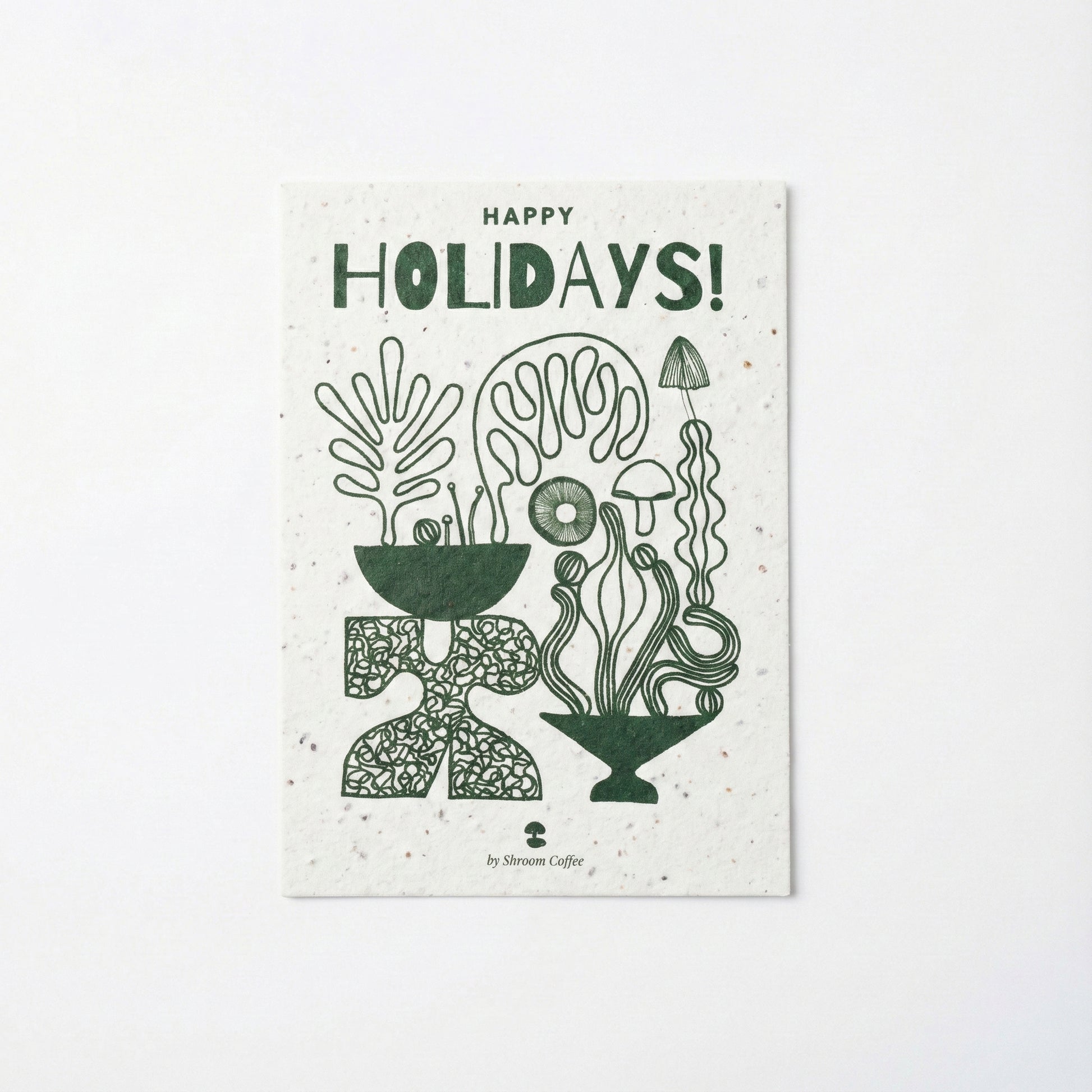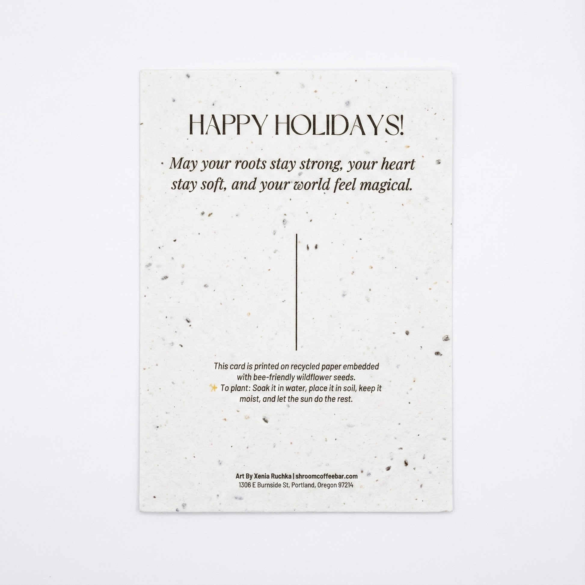 This eco-friendly postcard is crafted from recycled paper and embedded with wildflower seeds, featuring original artwork by Xeniya — founder of Shroom Coffee.